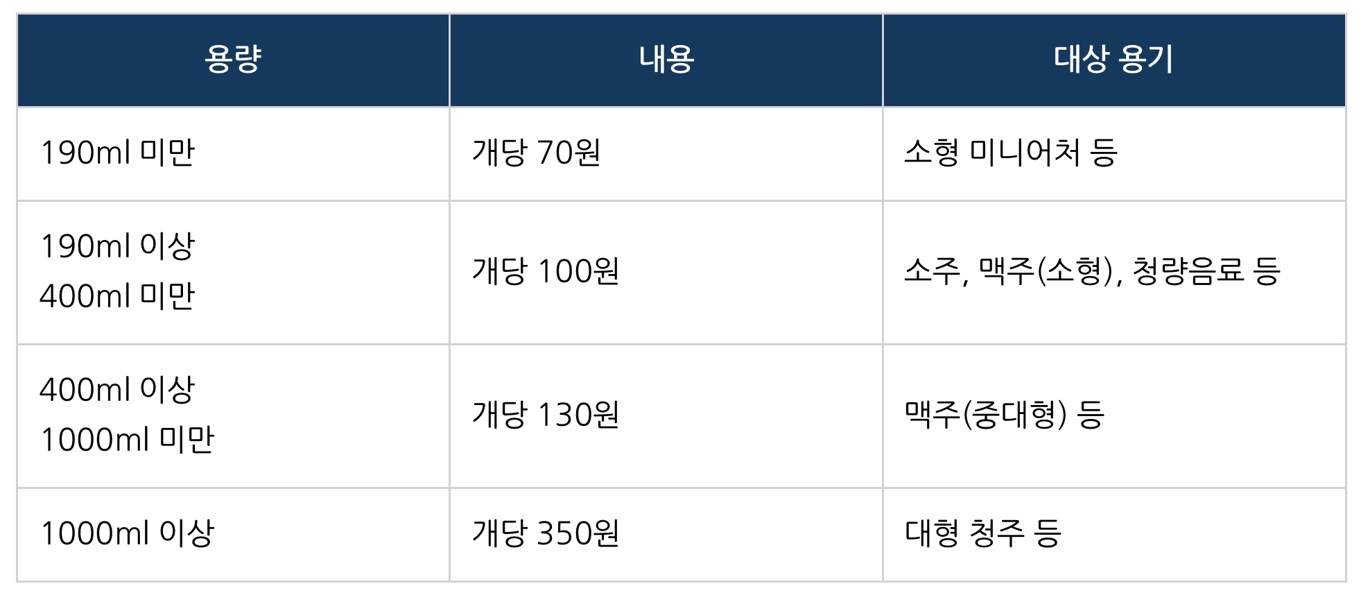 * 주류(소주, 맥주 등) 일부 음료 제품 중 반복 사용이 가능한 유리용기