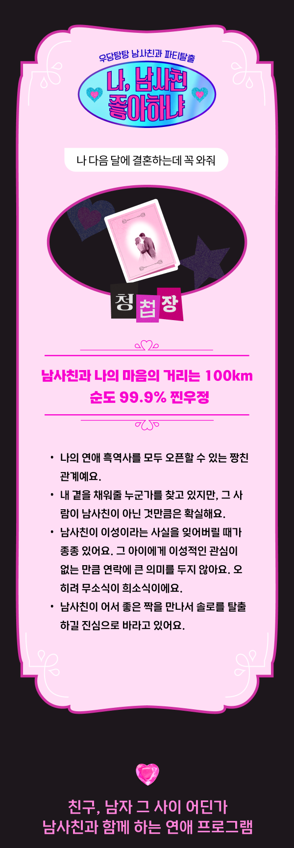 • 내 곁을 채워줄 누군가를 찾고 있지만, 그 사람이 남사친이 아닌 것만큼은 확실해요.
