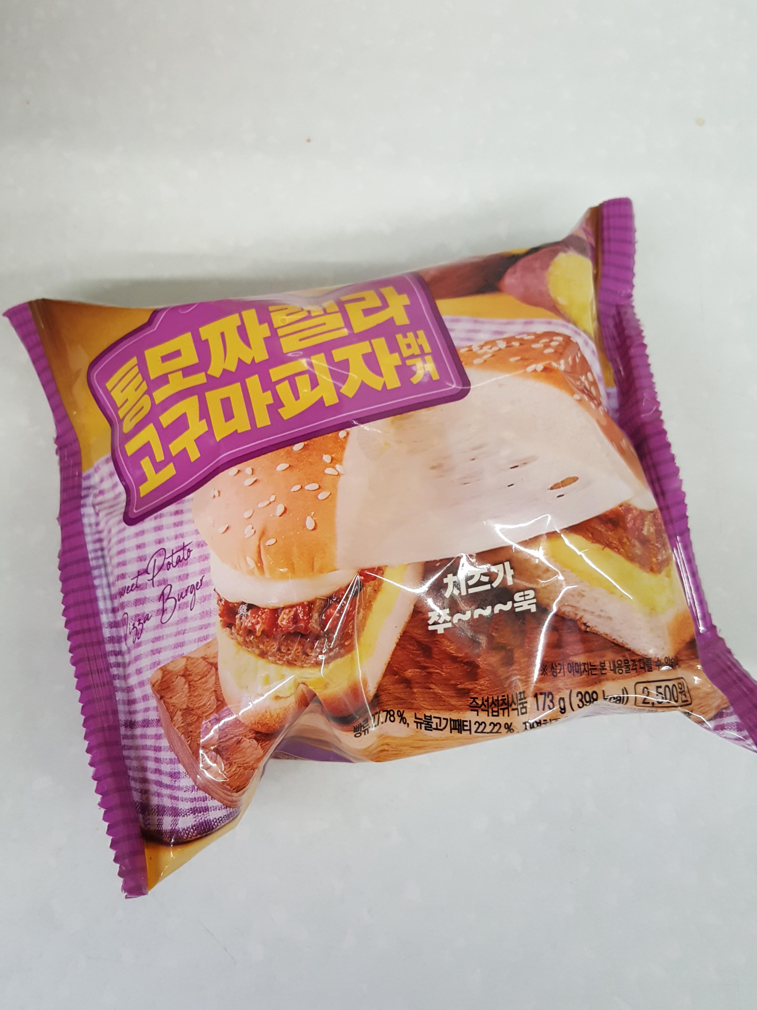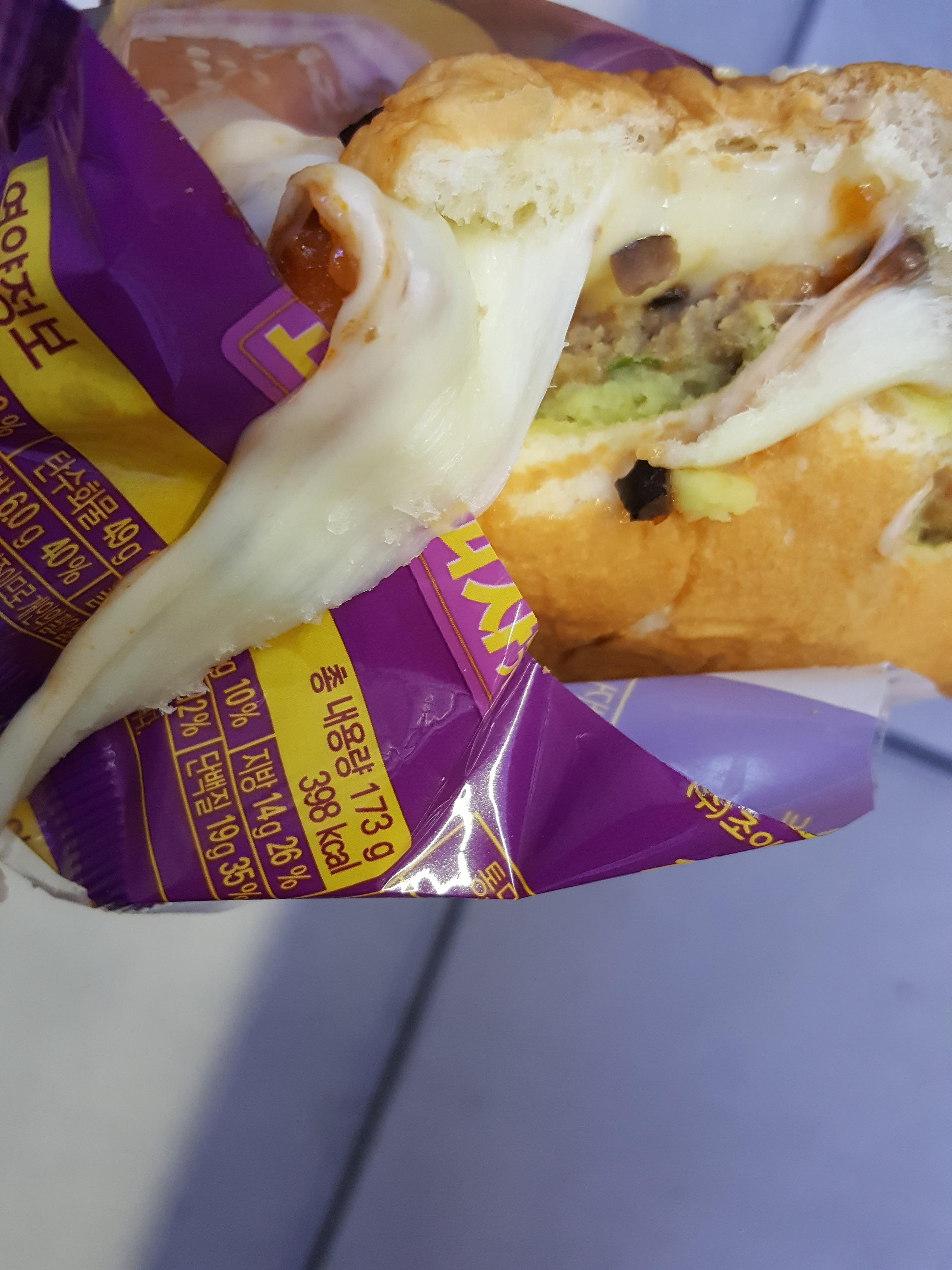 안에 내용물은 빵, 패티, 고구마무스 통치즈가 들어가 있네요