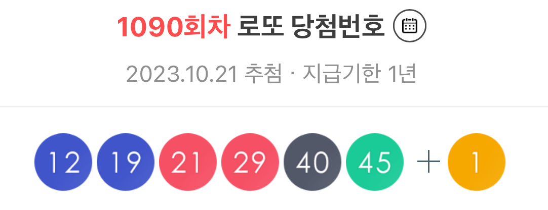 2023년 10월 21일 제1090회 로또 당첨번호 조회 결과가 발표되었으며 이번 로또 1등 당첨지역까지 같이 공개되었습니다.