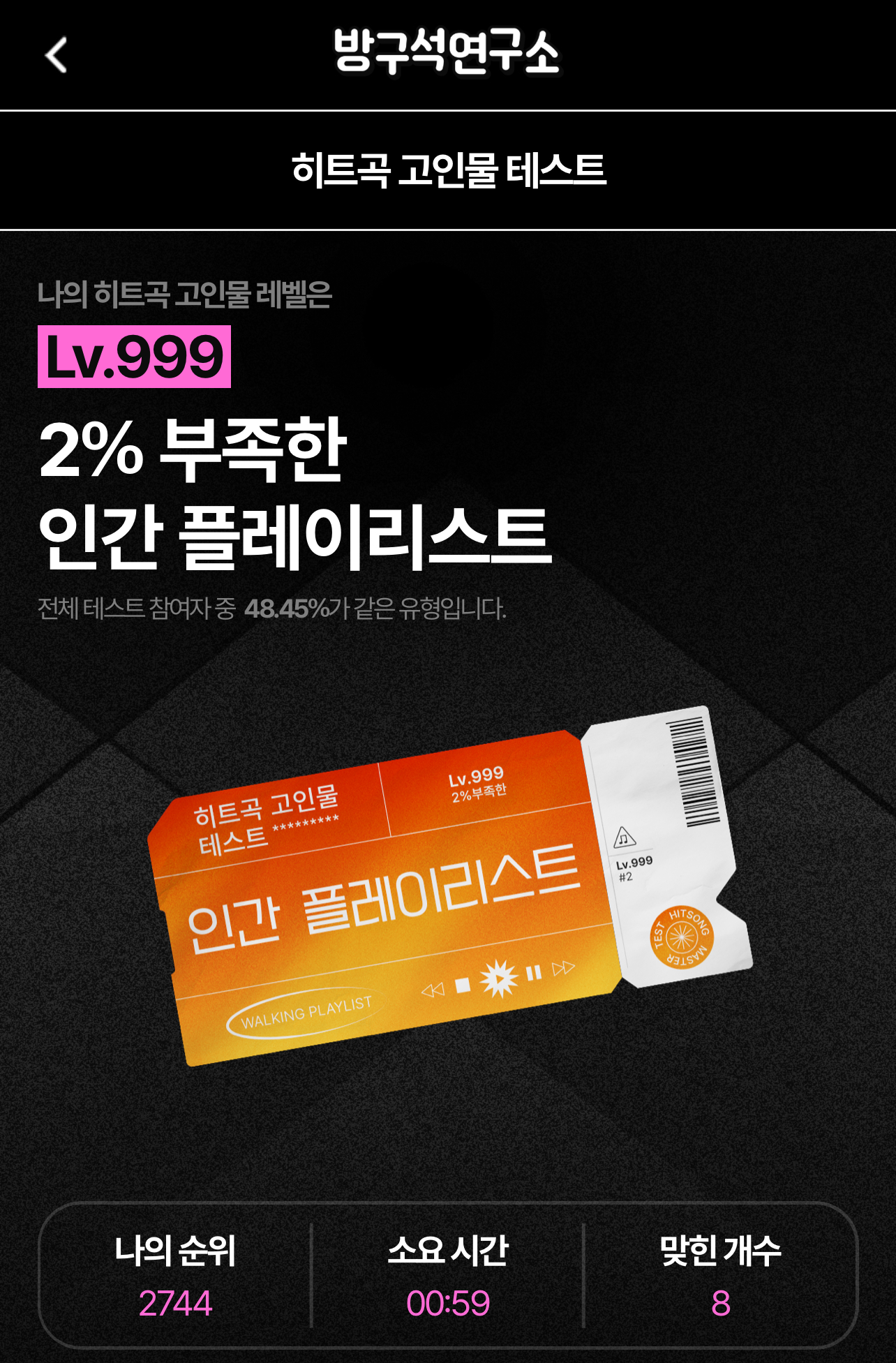 나의 히트곡 고인물 레벨을 알아보는 “히트곡 고인물 테스트”가 나와서 알려드리려고 합니다.