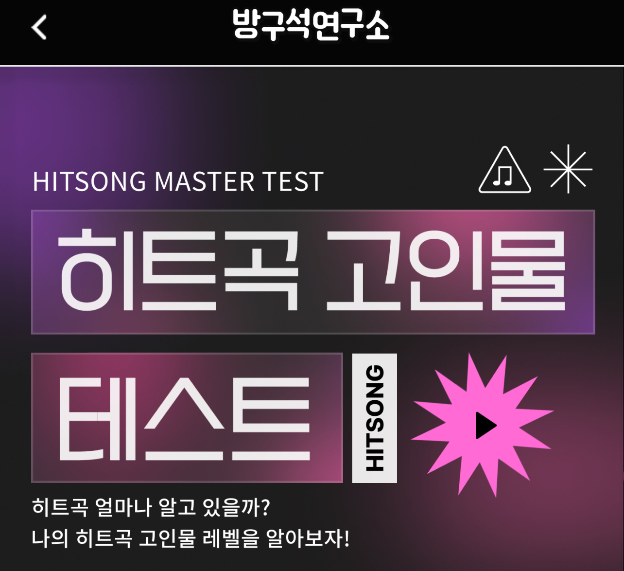 방구석연구소라는 사이트에서 나는 히트곡을 얼마나 알고 있는지?