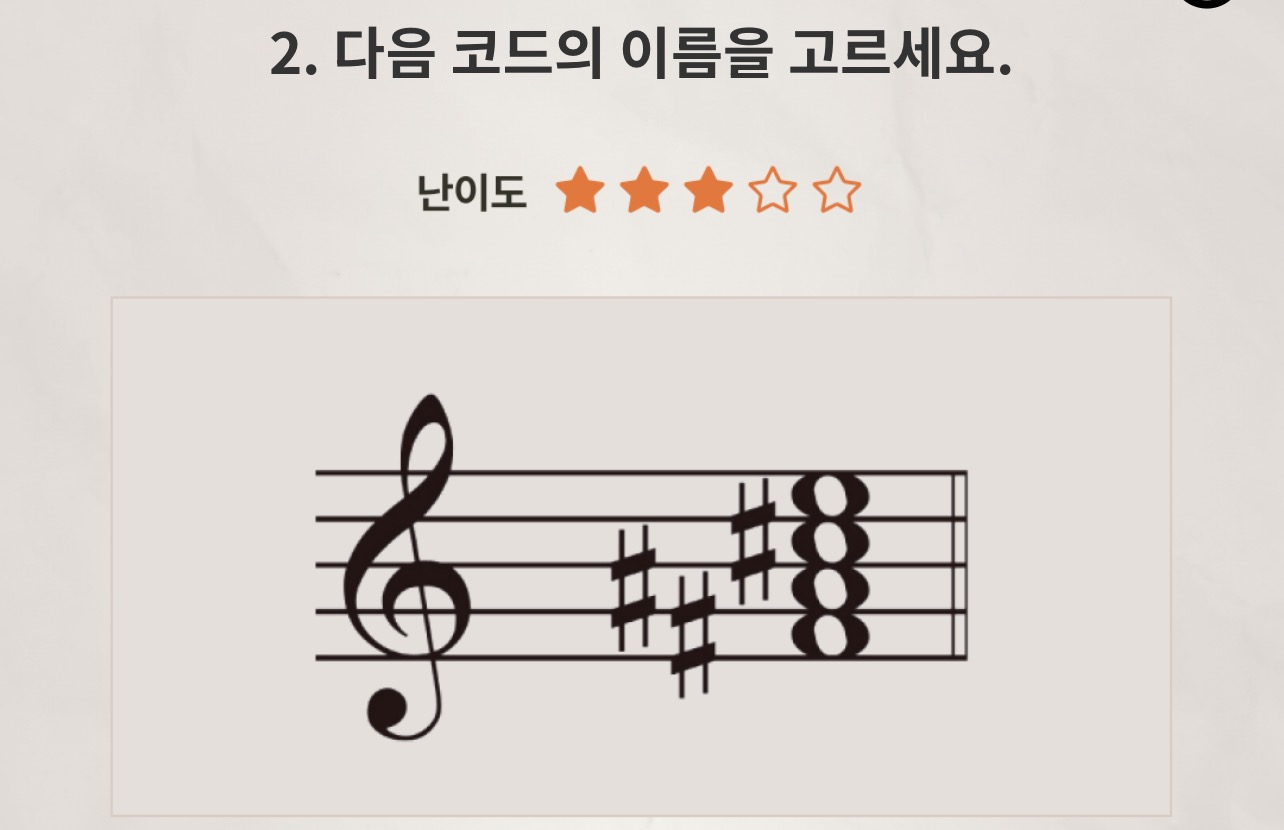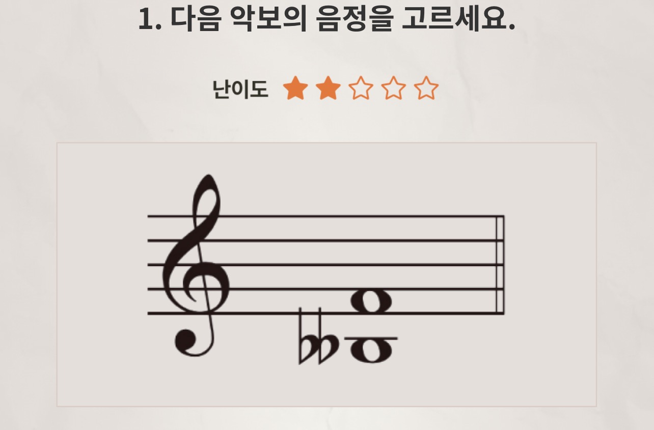 1. 다음 악보의 음정을 고르세요.