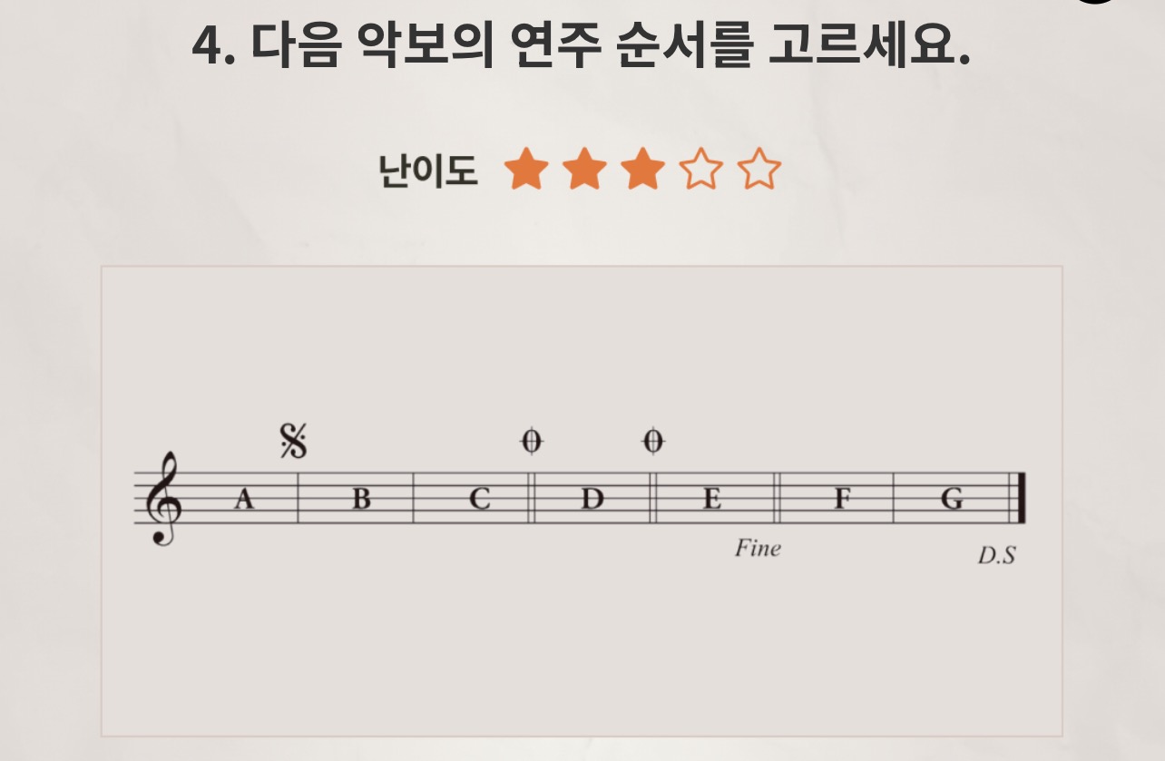 4. 4. 다음 악보의 연주 순서를 고르세요.