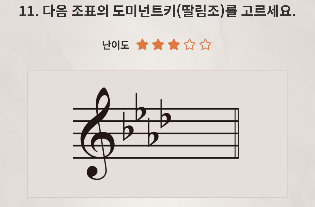 11. 다음 조표의 도미넌트키(딸림조)를 고르세요.