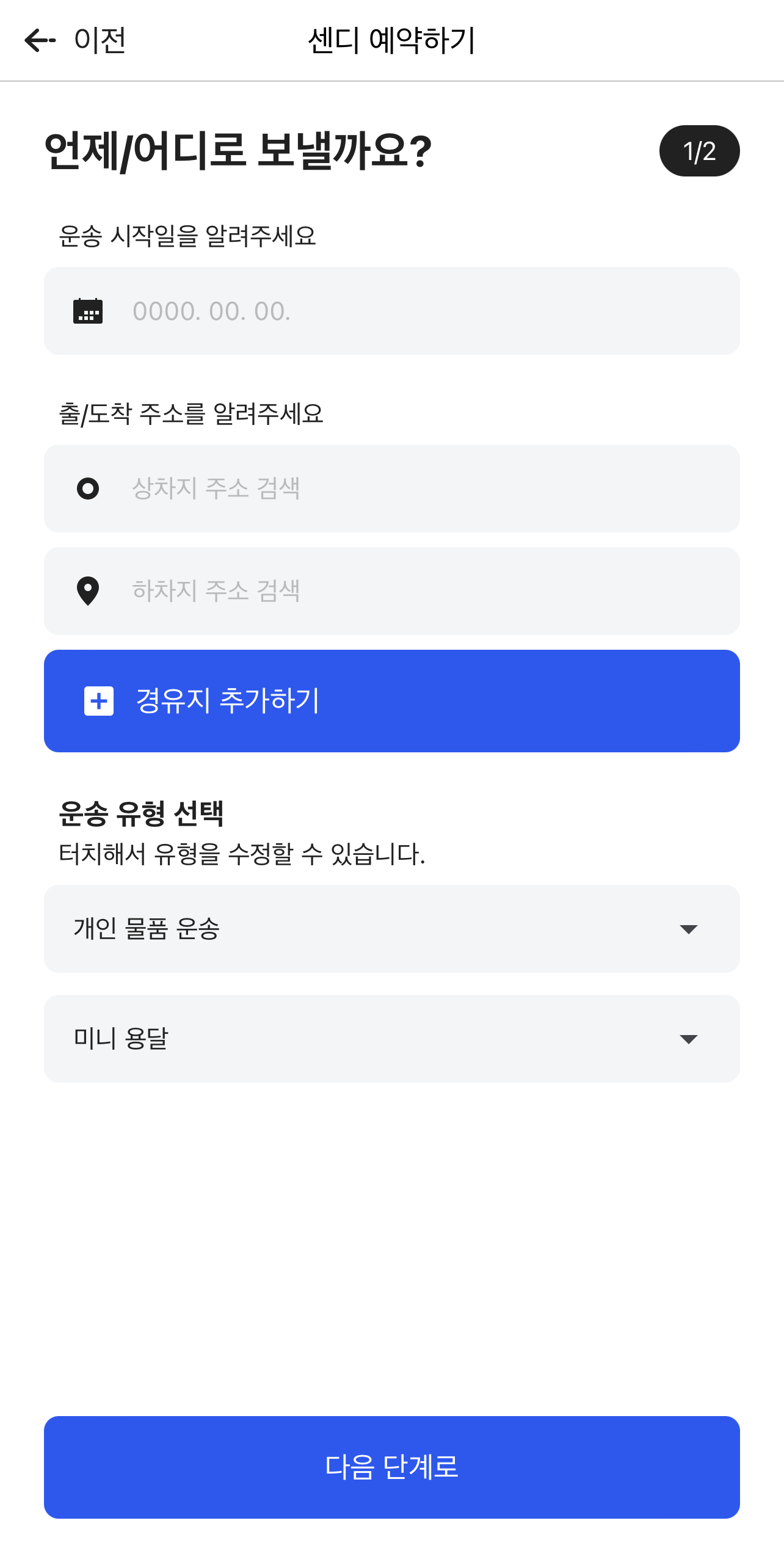 6. 운송시작일, 출발지 및 도착지, 운송 유형 선택 후 본인이 희망하는 용달 조건에 따라 진행하시면 됩니다.