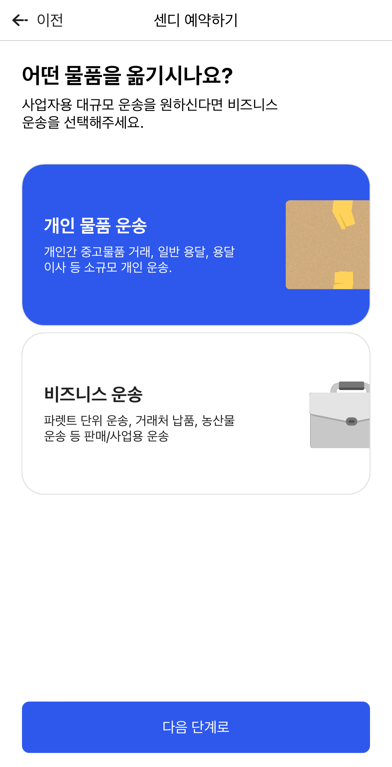 4. 개인 물품 운송 또는 비즈니스 운송 클릭