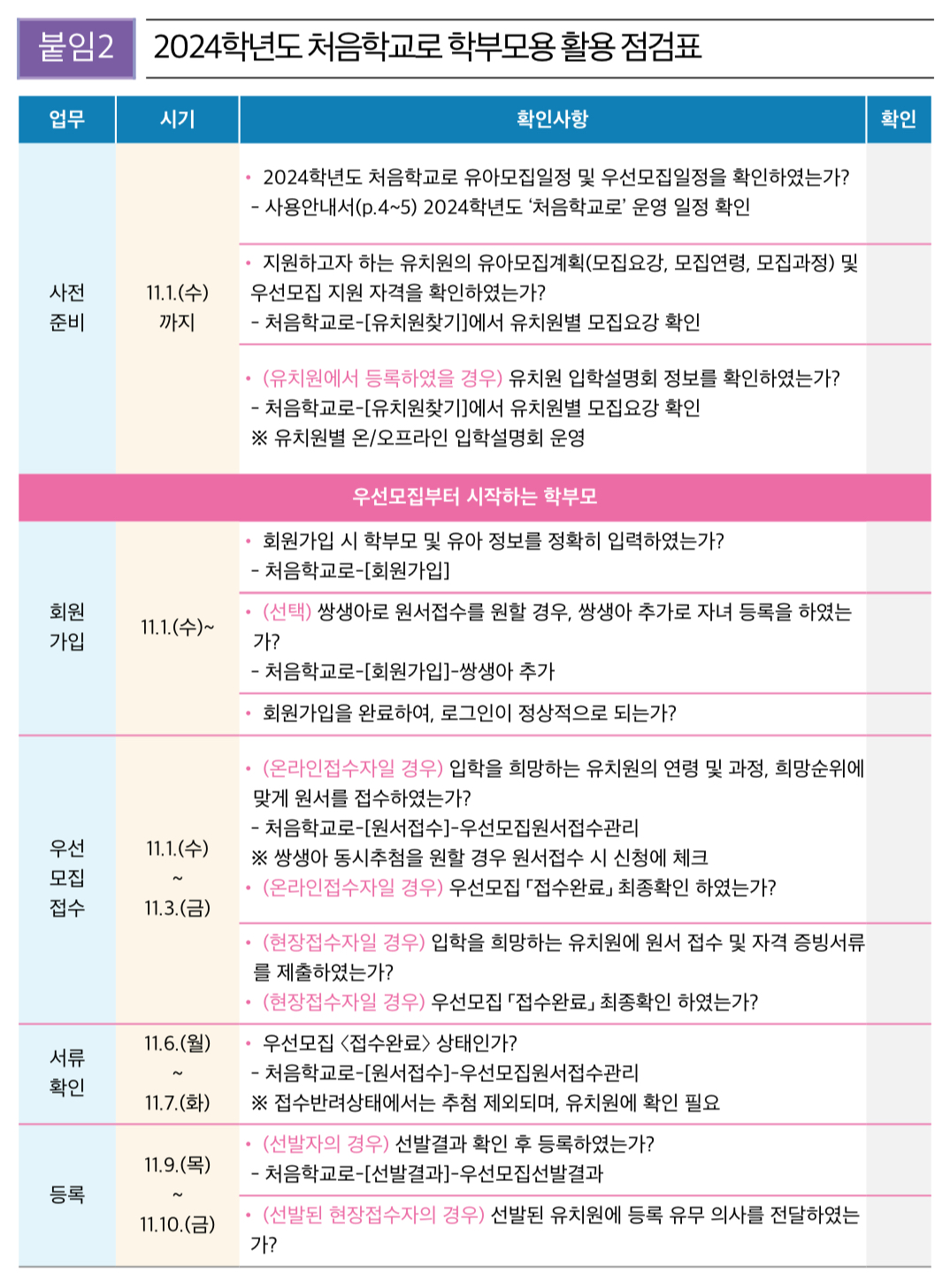 ※ 학부모 서비스(https://www.go-firstschool.go.kr) 상세 일정