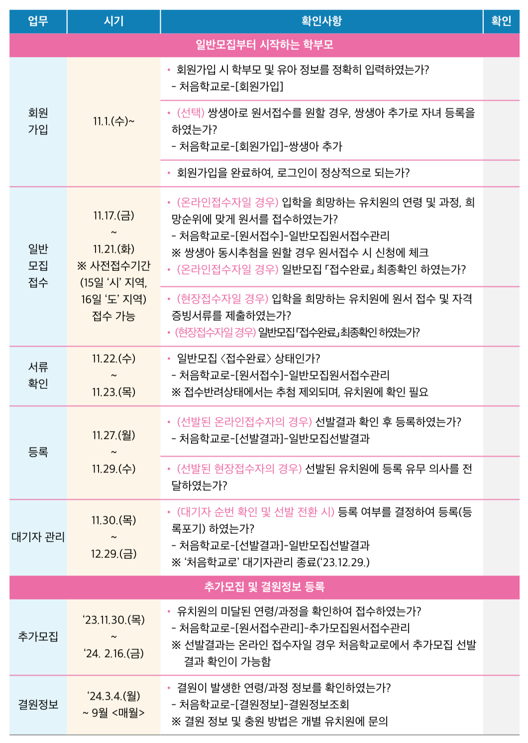 2023년 유치원 입학 신청 일정