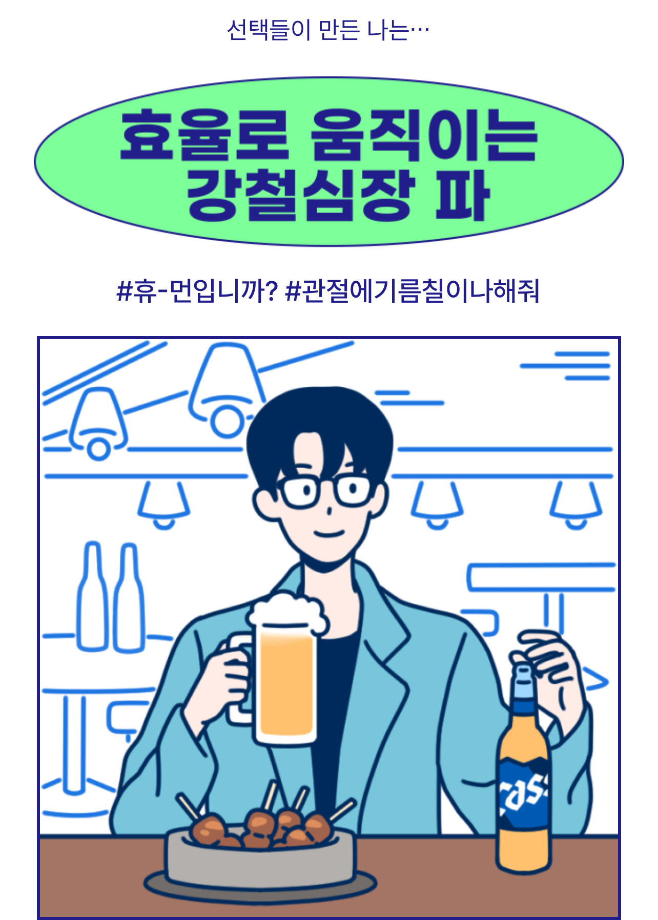 • B와 D 사이의 C.. 선택들이 만든 너는, '효율로 움직이는 강철심정 파'야