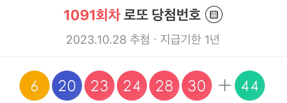 2023년 10월 28일 제1091회 로또 당첨번호 조회 결과가 발표되었으며 이번 로또 1등 당첨지역까지 같이 공개되었습니다.