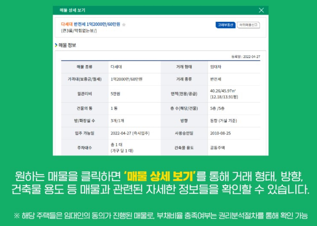 * 해당 주택들은 임대인의 동의가 진행된 매물로, 부채비율 충족여부는 권리분석절차를 통해 확인 가능