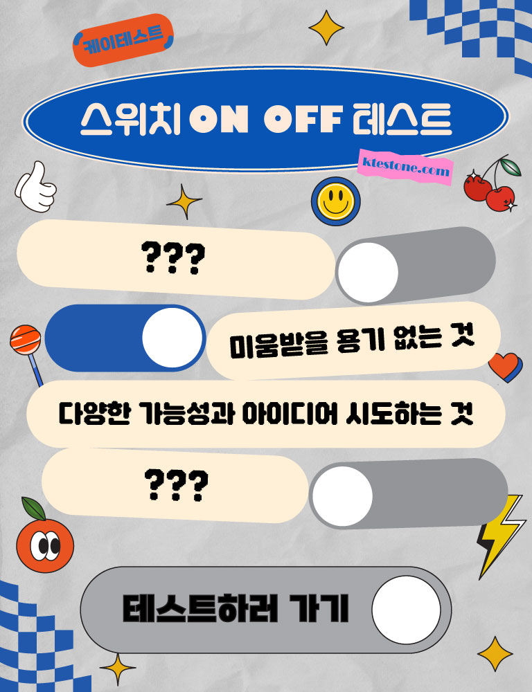 케이테스트라는 다양한 재밌는 테스트를 만드는 사이트에서 어떤 성격을 ON하고 OFF를 하는 것이 좋을지 알아보는 스위치 ON OFF 테스트가 있어서 알려드리려고 합니다.