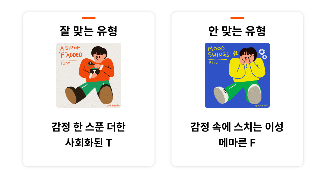 • T 100%인 사람보고 감정 하나 없는 로봇으로 표현하더라구 요? 저도 감정 있어요..!