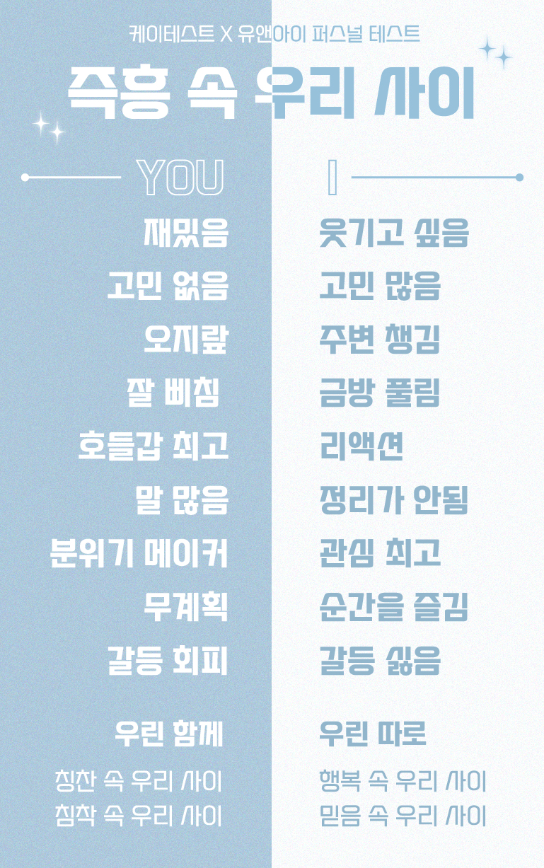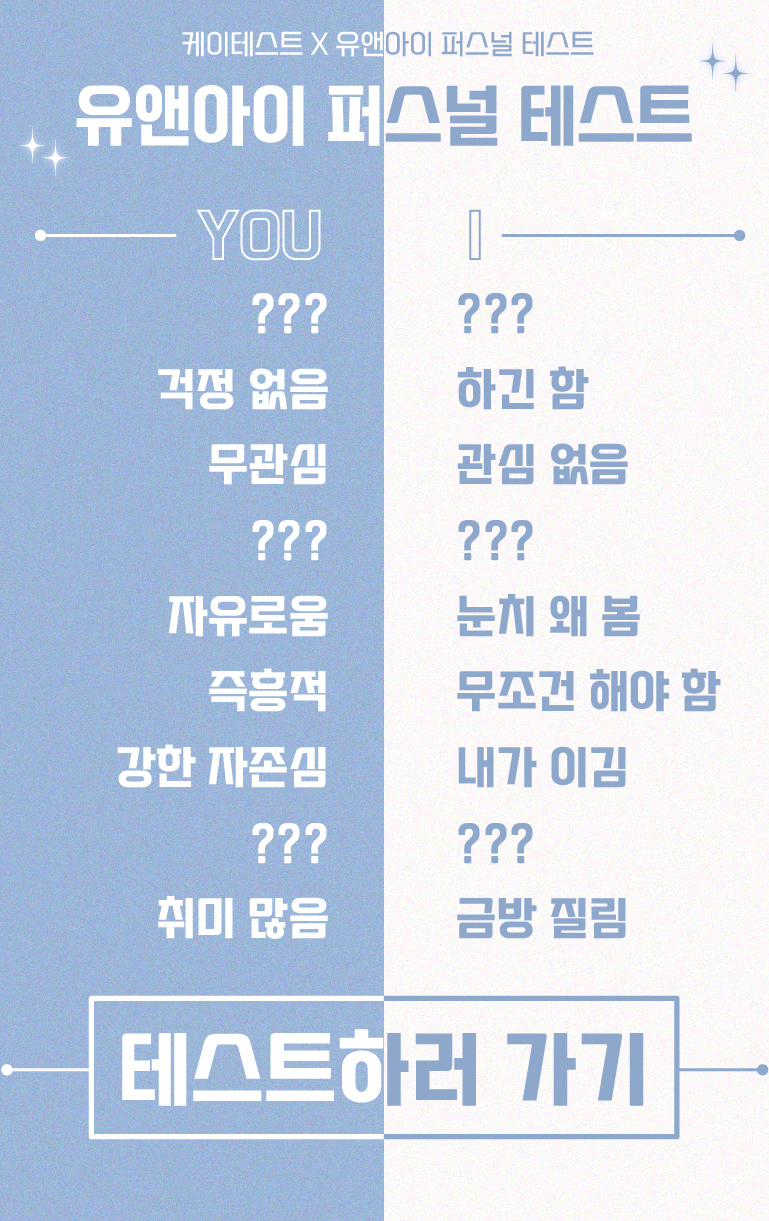 케이테스트에서 너와 내가 생각하는 나의 성격을 알아보는 ‘유앤아이 퍼스널 테스트’가 등장해서 알려드리려고 합니다.