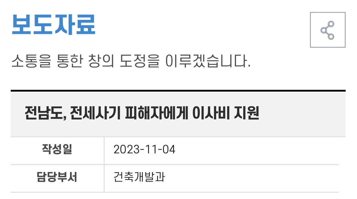 마지막으로 조병섭 전남도 건축개발과장은 “이사비 지원이 전세 사기로 고통받는 도민에게 희망의 씨앗이 되기 바란다”며 “피해자 결정 등은 국토교통부와 협의해 빠른 처리가 되도록 노력하겠다”라고 말했습니다.