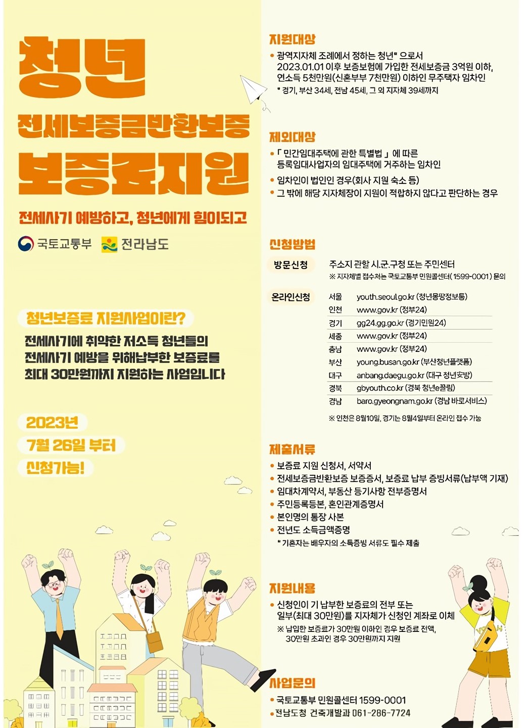 청년 전세보증금 반환 보증료는 최대 30만 원이 지원되며 주소지 관할 시군 건축부서에 상담 후 신청하면 됩니다.