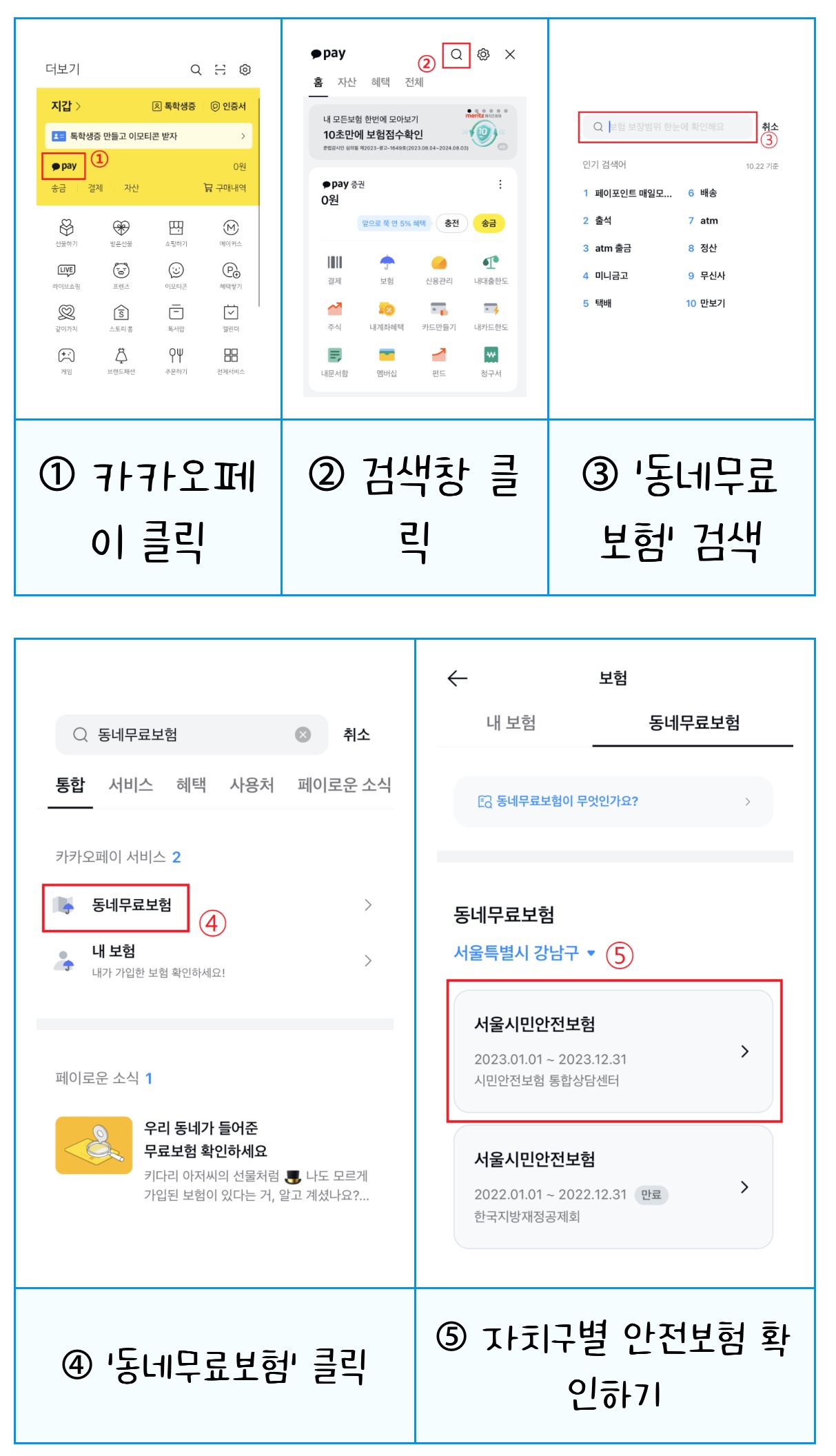 ➄ 자치구별 안전보험 확인하기
