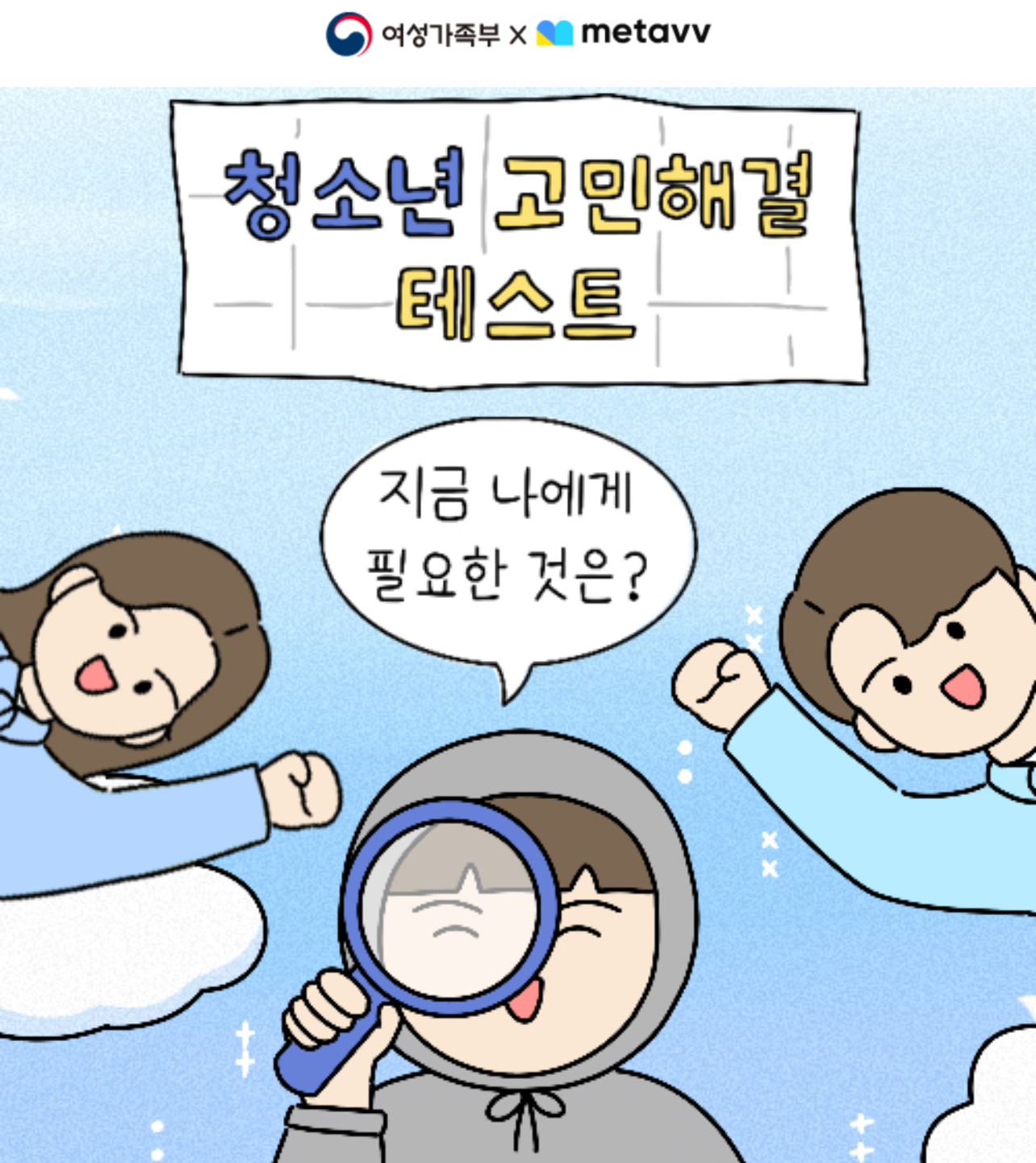 여성가족부와 메타브가 콜라보해서 ‘청소년 고민해결 테스트’라는걸 만든듯 한데 여러분들께 안내드리겠습니다.