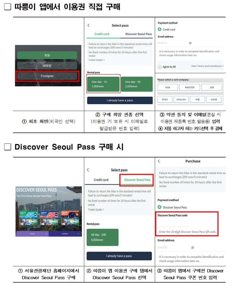 마지막으로 현재 서울관광재단을 통해 디스커버 서울 패스로 판매 중인 외국인 대상 따릉이 쿠폰 판매 채널을 확대한다고 합니다.