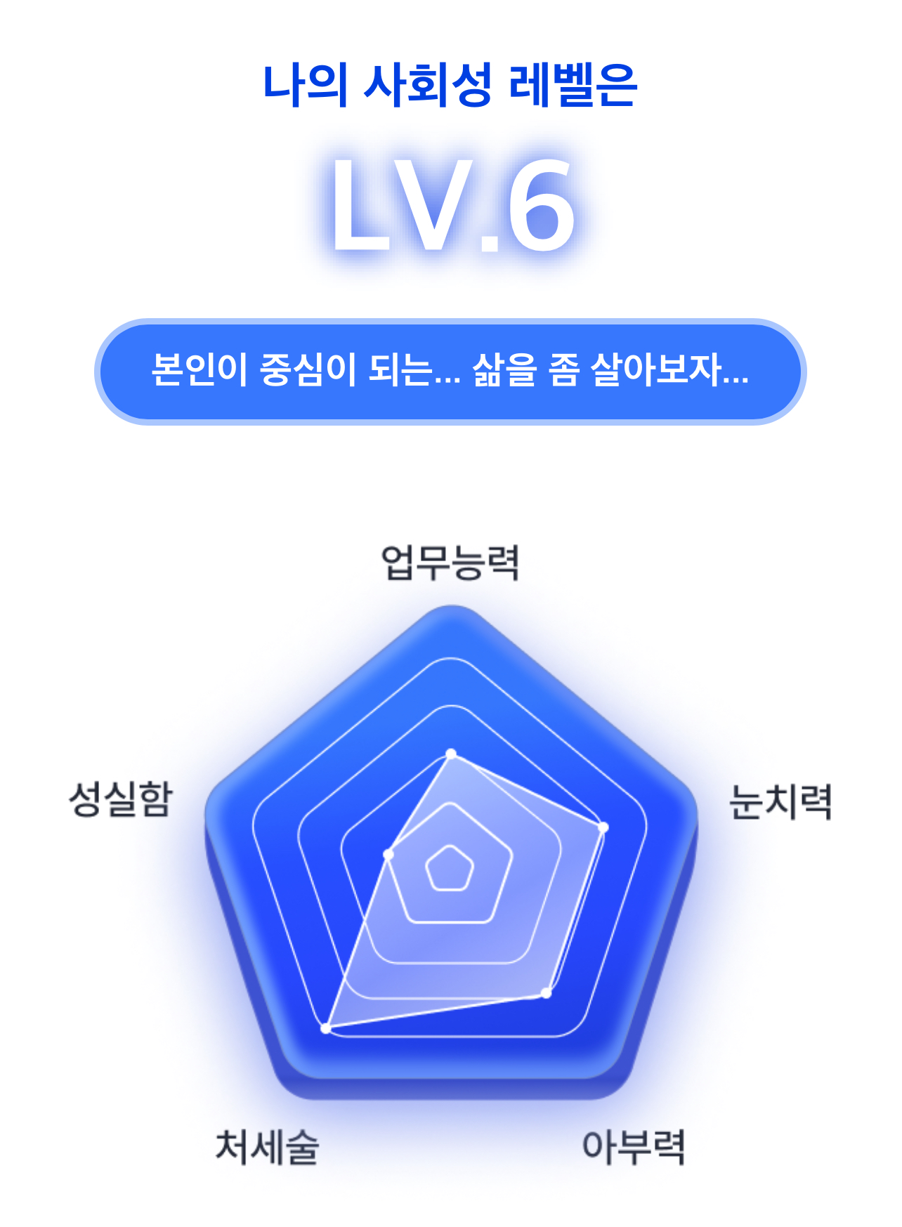나의 사회성 레벨은 LV.6이 나왔습니다.