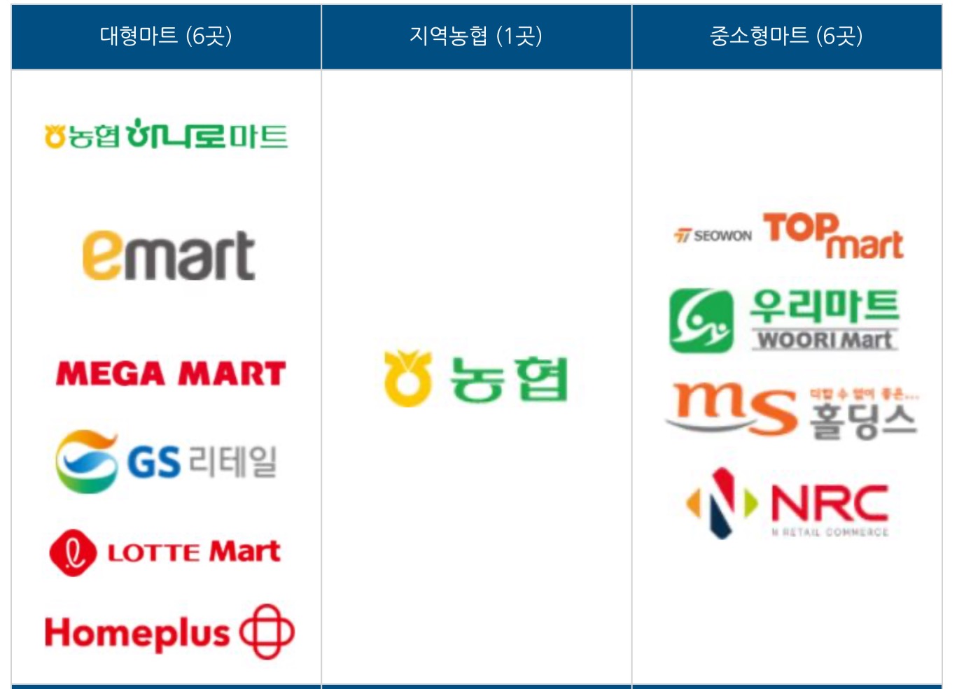 👉 대형·중소형 마트, 친환경 매장, 로컬푸드직매장, 지역 하나로 마트