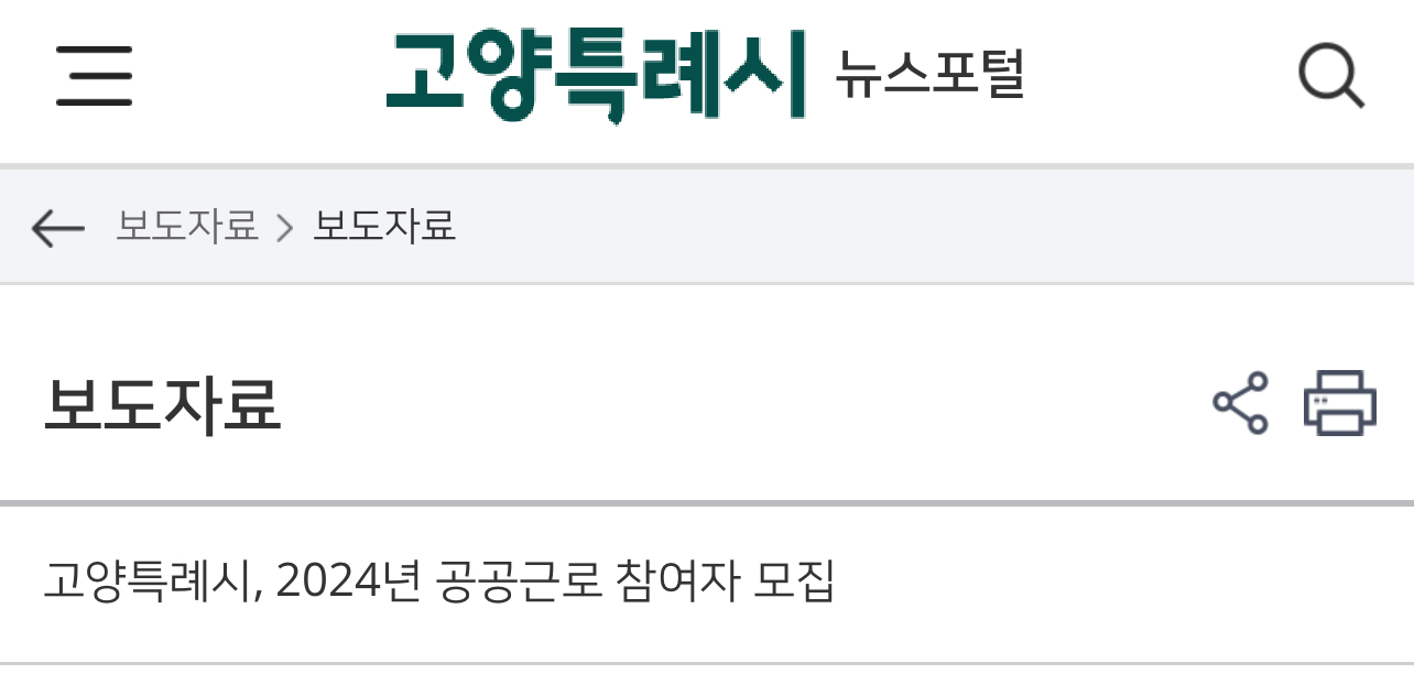 고양특례시(시장 이동환)가 2023년 11월 20일부터 11월 24일까지 2024년도 제1단계 공공근로사업 참여자를 모집한다고 밝혔습니다.