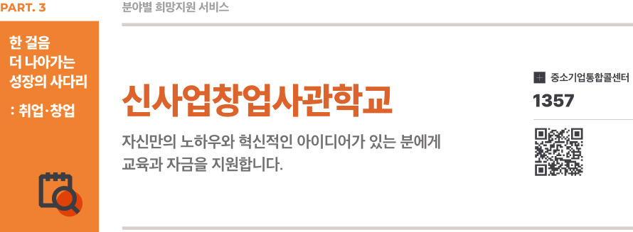 자신만의 노하우와 혁신적인 아이디어가 있는 분에게 교육과 자금을 지원하는 ‘신사업창업사관학교’에 대해서 안내드리겠습니다.