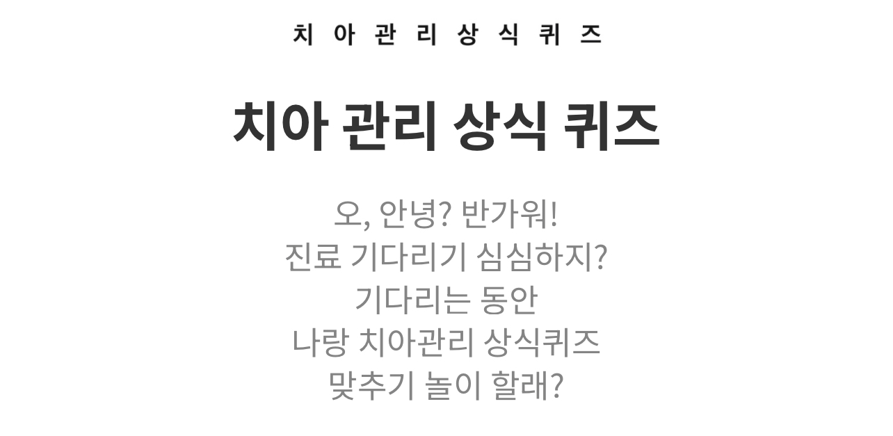 나는 치아 관리에 대한 상식이 얼마나 있는지 알아보는 치아 관리 상식 퀴즈를 소개드리겠습니다.