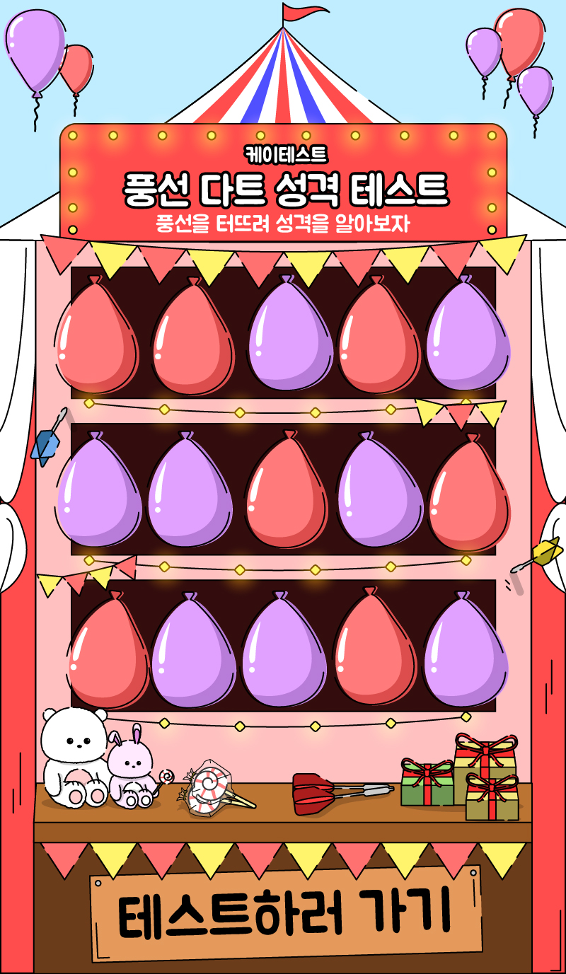 풍선을 터트려 성격을 알아보는 케이테스트의 풍선 다트 성격 테스트가 새로 나왔다는데 알려드리도록 하겠습니다.