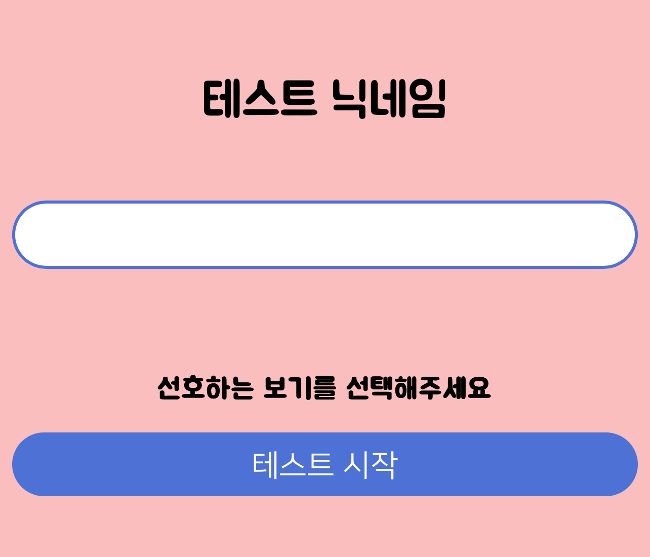 치킨 취향 테스트는 시작에 앞서 닉네임을 만들어야하는데 그냥 아무렇게나 입력하시면 됩니다.