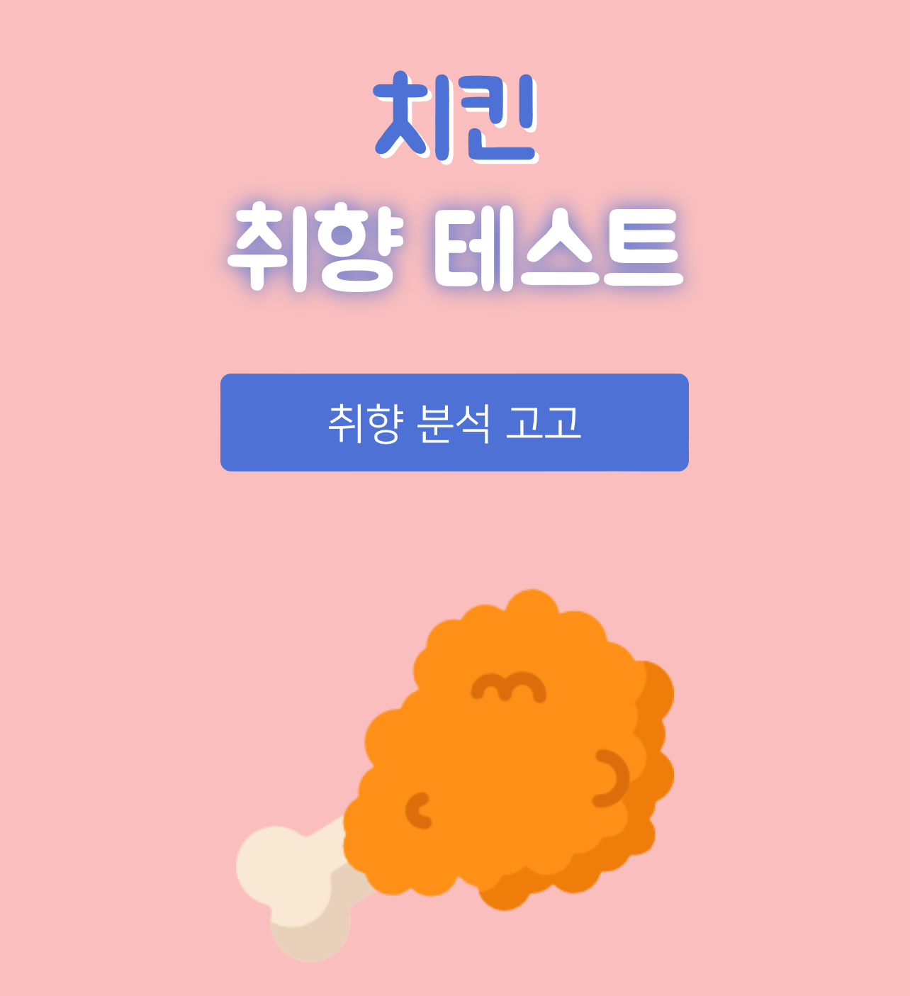 과연 나의 치킨 취향은 남과 비교했을때 어떤지 알아보는 테스트를 소개드리겠습니다.