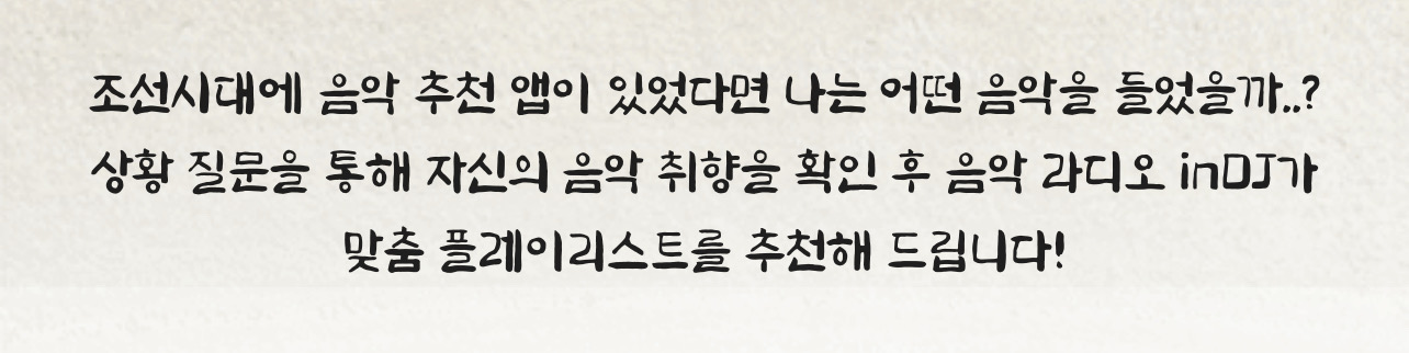 음악취향과 관련된 질문들을 바탕으로 나의 조선시대 계급 유형을 알려주고 이에 맞는 플레이리스트도 추천해 주는 유형 테 스트가 나왔다는데 소개드리겠습니다.