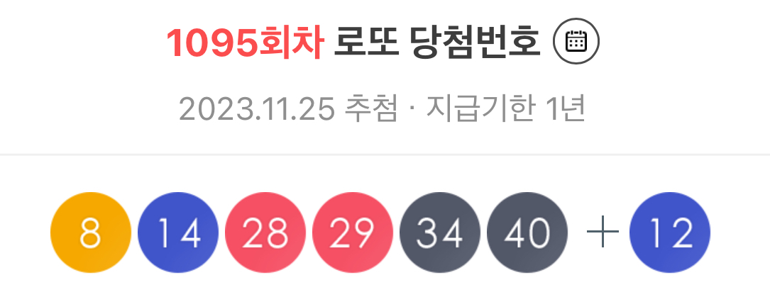 2023년 11월 25일 제1095회 로또 당첨번호 조회 결과가 발표되었으며 이번 로또 1등 당첨지역까지 같이 공개되었습니다.