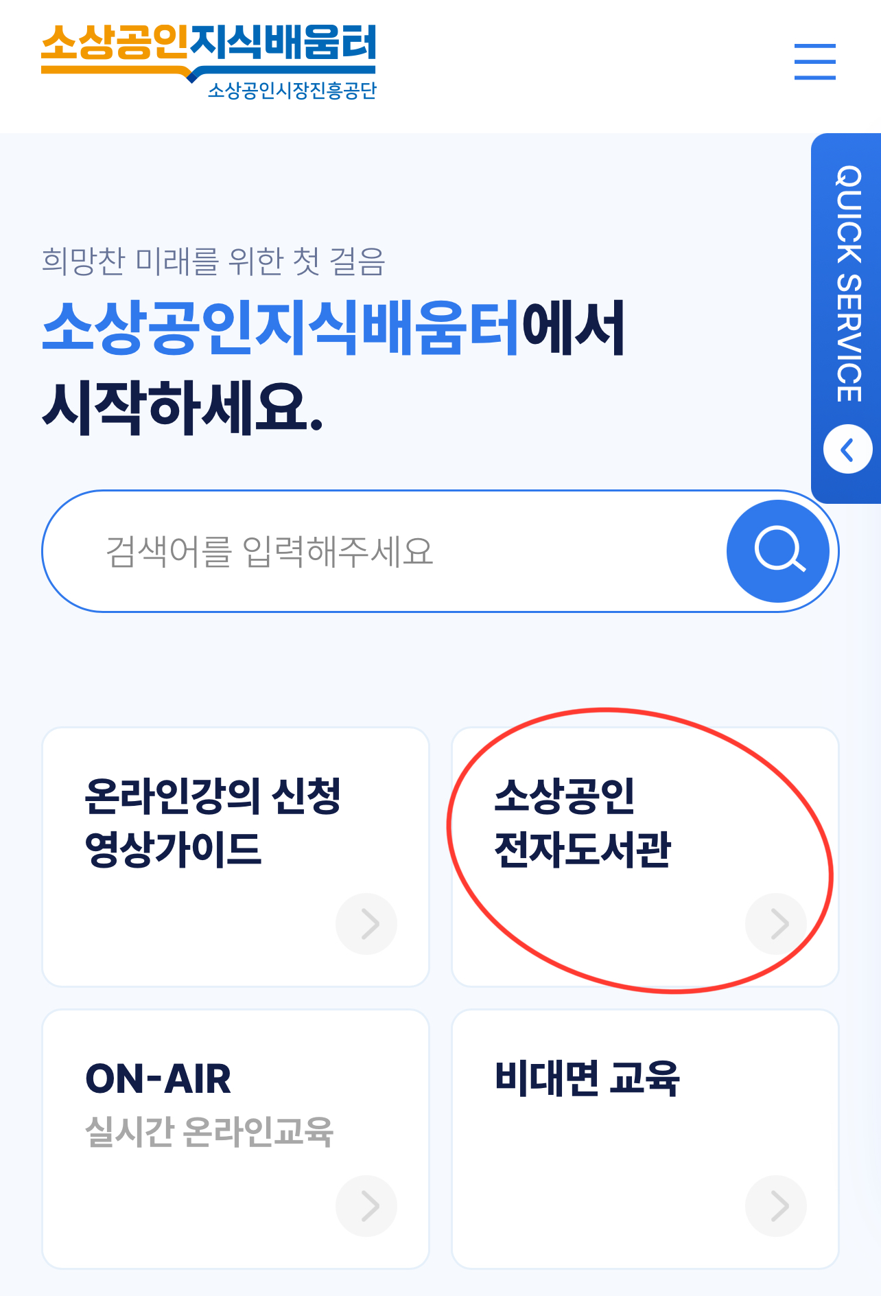 소상공인 지식배움터 전자도서관에서 과정을 한 가지만 수료하면 무료로 볼 수 있다는데 여러분께 소개드리려고 합니다.