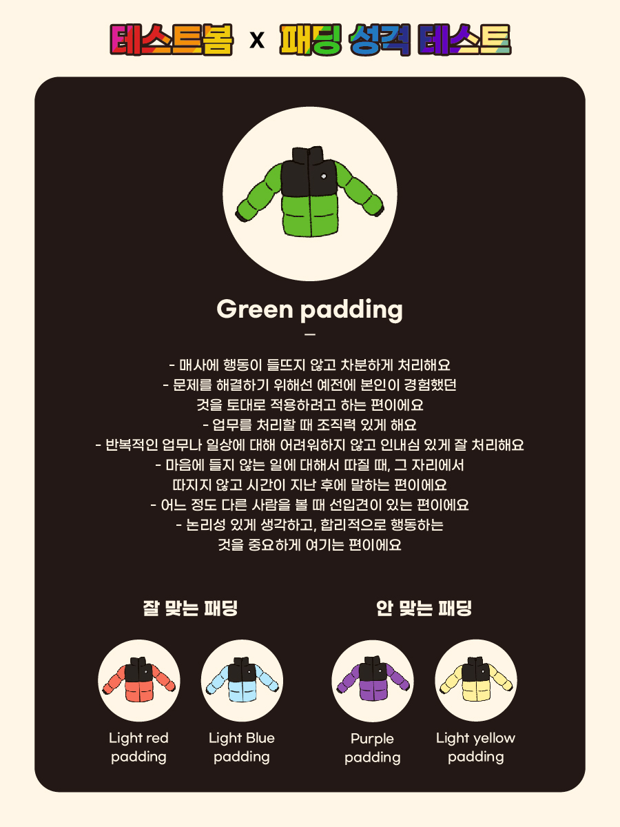 나와 맞는 패딩은 어떤 색일지 알아보는 테스트봄의 패딩 성격 테스트를 소개드리겠습니다.