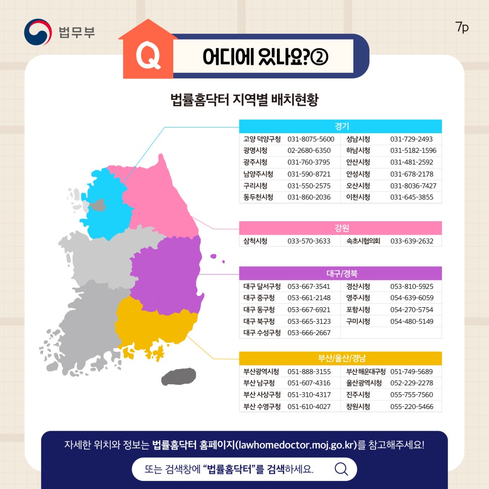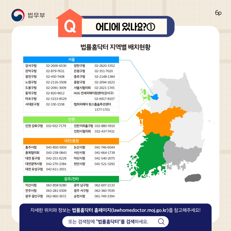 자세한 위치와 정보는 법률홈닥터 홈페이지(https://lawhomedoctor.moj.go.kr)를 참고하시거나 또는 검색창에 “법률홈닥터”를 검색하시길 바랍니다.