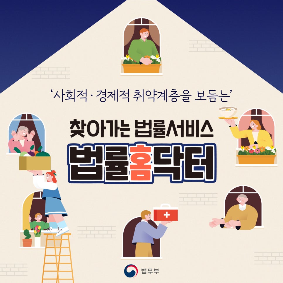 본 설명은 법무부 출처를 안내로 작성되었으며 법무부는 사회적 경제적 취약계층을 보듬는 법무행정, 도움이 필요한 당신 곁에 항상 법무부가 함께하겠다고 밝혔습니다.