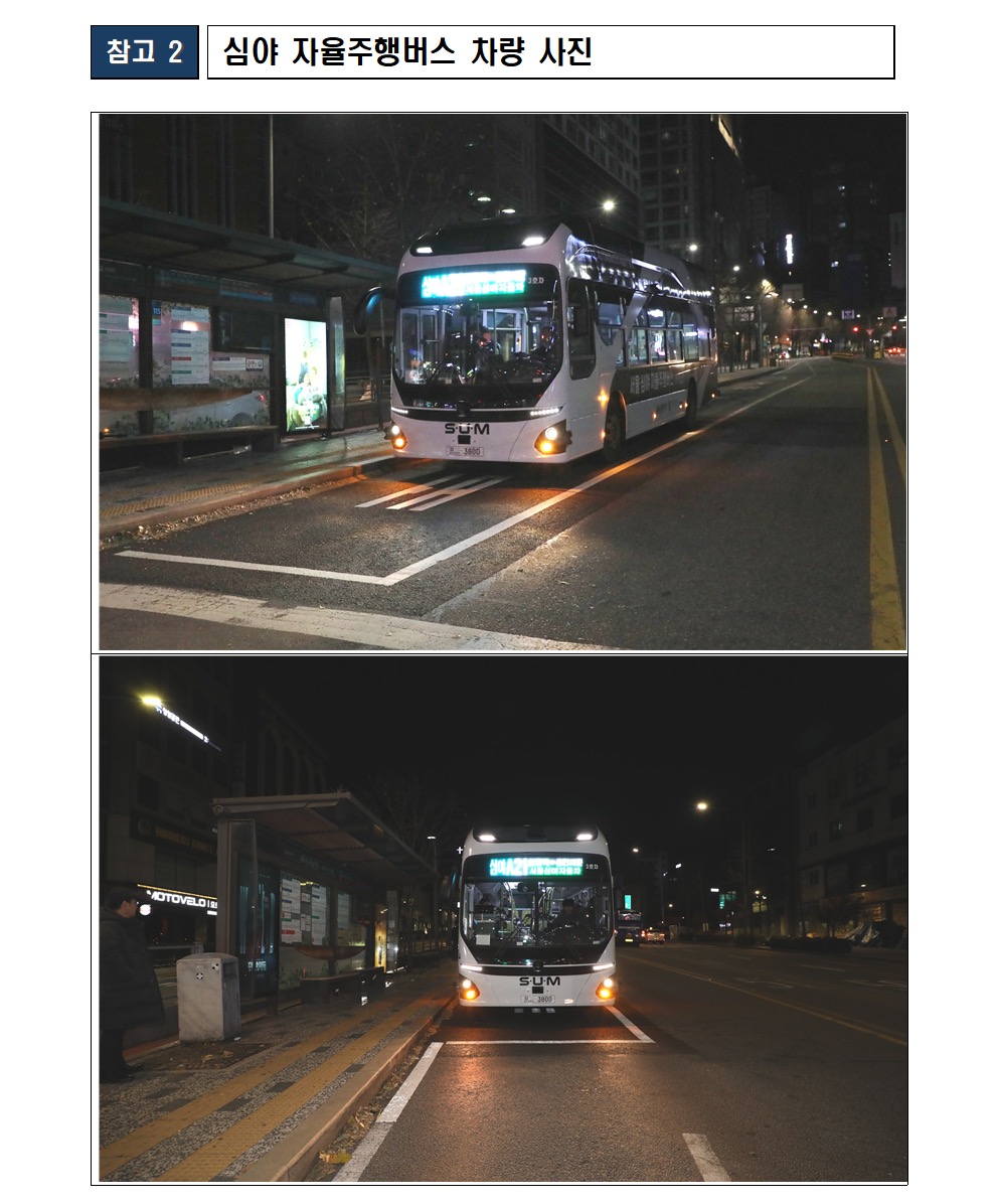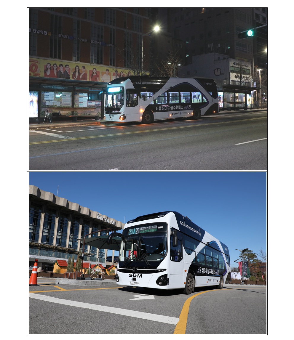 서울시가 2024년 12월 4일 23시 30분부터 세계 최초로 부도심과 도심을 연결하는 간선기능의 심야 자율주행버스 정기 운행을 시작했다고 합니다.