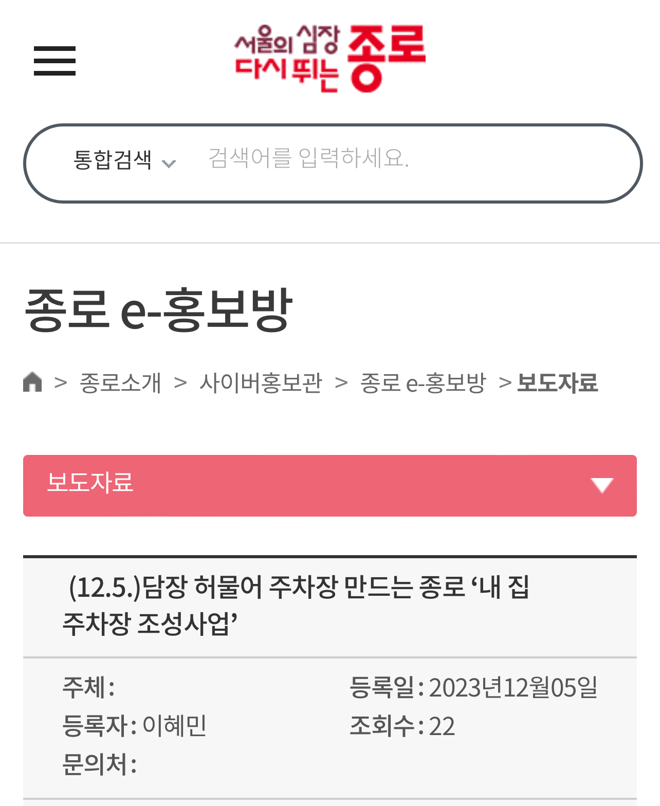 한편 종로구는 올해 내 집 주차장 조성사업을 통해 주차장 총 23면(담장 허물기 7, 자투리땅 16)을 만들고, 그중 16면은 거주자우선주차장으로 개방 예정이라고 합니다.