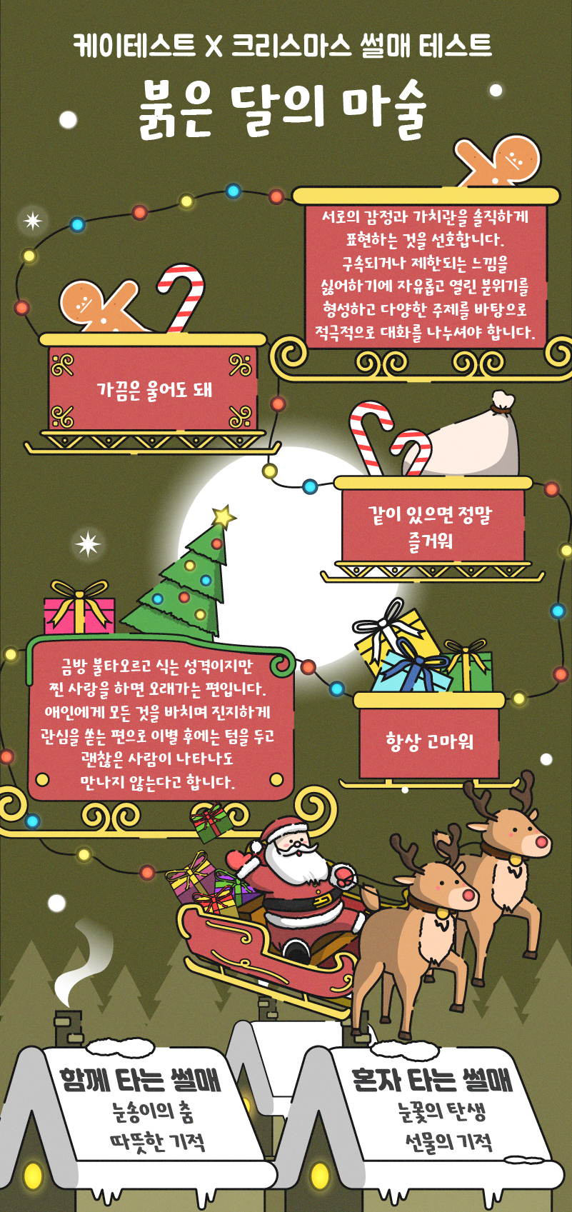 케이테스트라는 다양한 재밌는 테스트가 올라오는 사이트에서 산타의 썰매에서 연애 성격을 알아보는 크리스마스 썰매 테스트를 소개드리겠습니다.