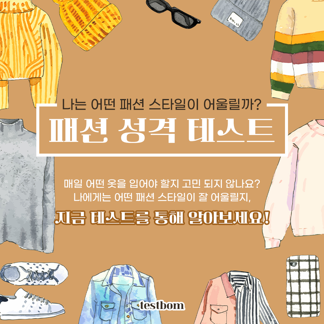 나에게는 어떤 패션 스타일이 잘 어울릴지 지금 테스트를 통해 알아볼 수 있는 테스트봄에서 나온 패션 성격 테스트를 소개해 드리겠습니다.