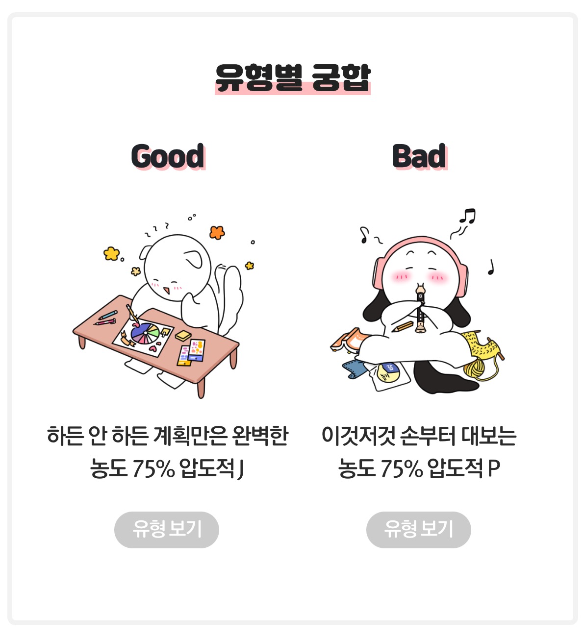 • 매일 하루의 일정을 계획 세우는 걸 보면 J가 맞긴 한데.. 왜 P형 사람이랑 같이 누워있죠?