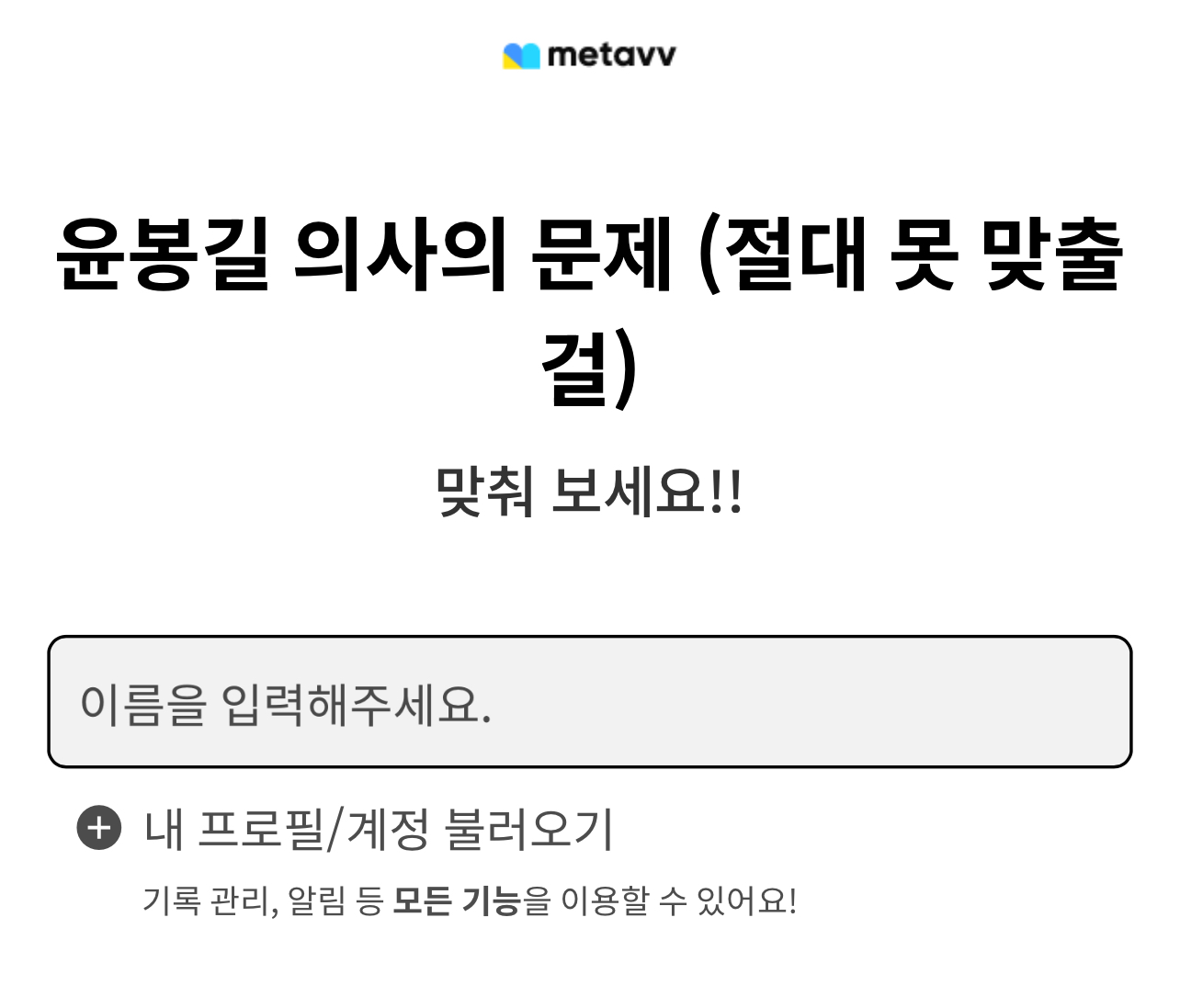 먼저 이름이나 닉네임을 아무렇게나 입력하셔서 시작하시면 됩니다.