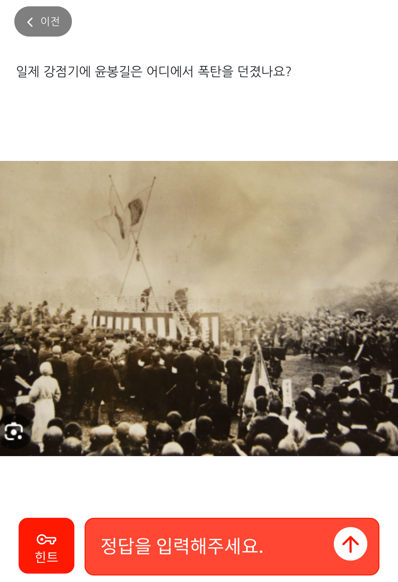그런다음은 위 사진처럼 윤봉길 의사와 관련된 퀴즈 문제가 등장합니다.