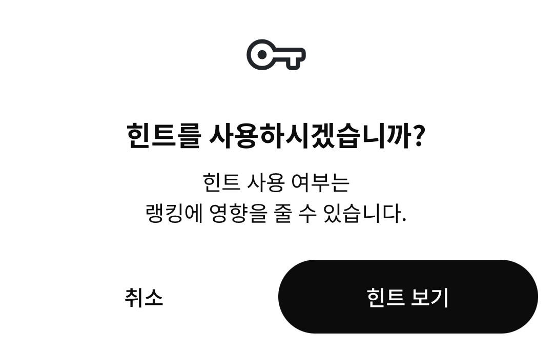 힌트는 랭킹에 영향을 줄 수 있으니 이점 고려하셔서 사용해보시길 바랍니다.