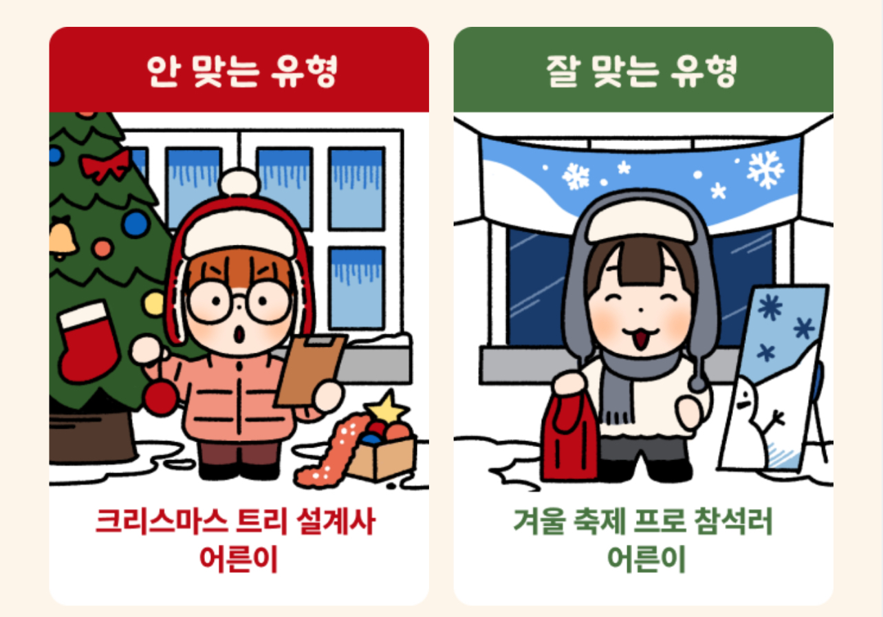 크리스마스를 맞이한 나는 어떤 어른이 일지 알아보는 테스트가 푸망에서 나와서 소개드리려고 합니다.