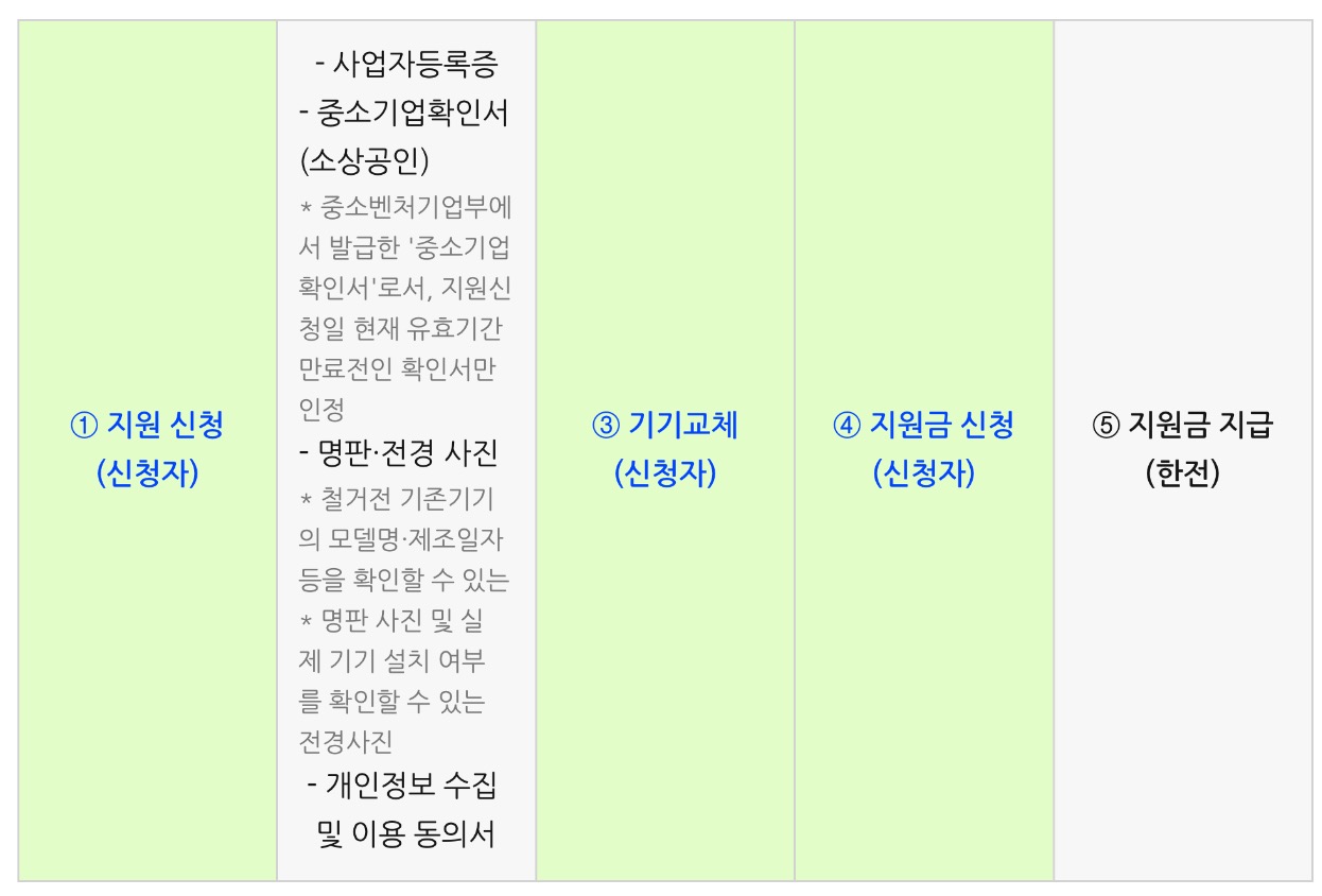- 한전의 승인 후 3개월 이내 신규기기 설치 및 지원금 신청 후 지원금 지급