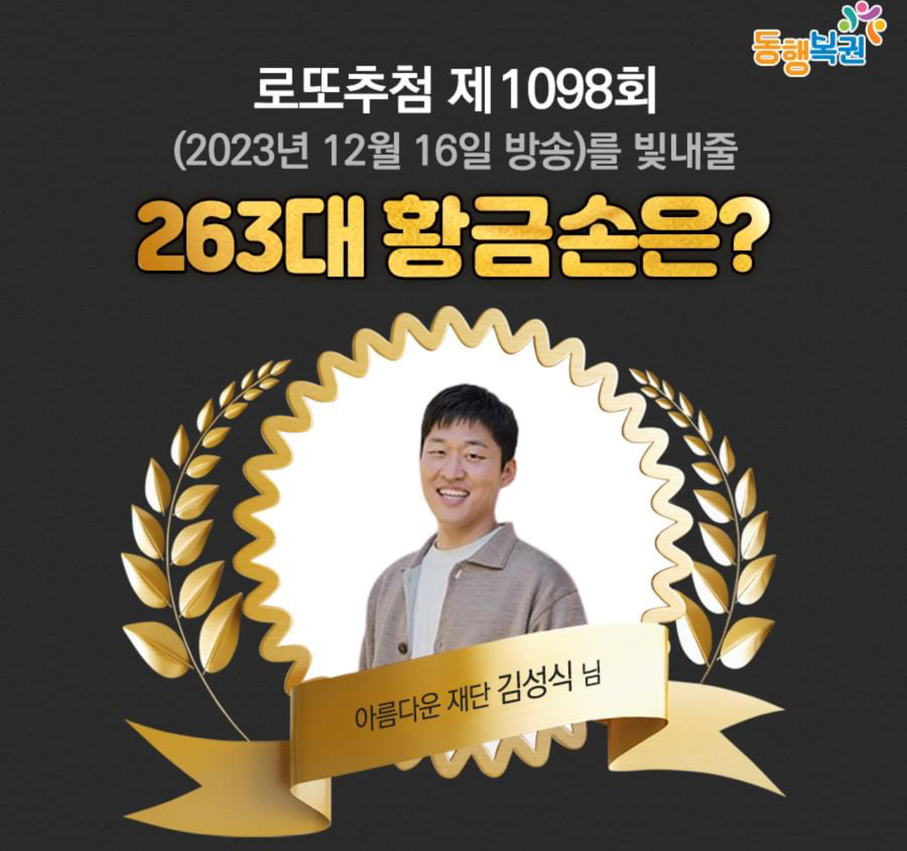 자립준비청년을 위한 캠페인 <열여덟 어른> 총괄기획자 김성식 국장이 1098회 '생방송 행복드림 로또 6/45'의 '황금손'으로 출연한다고 합니다.