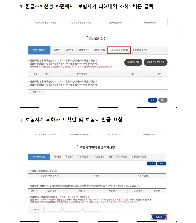 금감원 관계자는 "자동차 보험사기로 인한 피해사실이 확인되는 경우 보험회사는 보험사기 피해자의 별도 신청이 없어도 할증된 자동차보험료를 환급해 드리고 있다"며 "다만 피해자의 연락처가 변경되는 경우 할증보험료 안내 및 환급에 어려움이 있다"고 전했습니다.